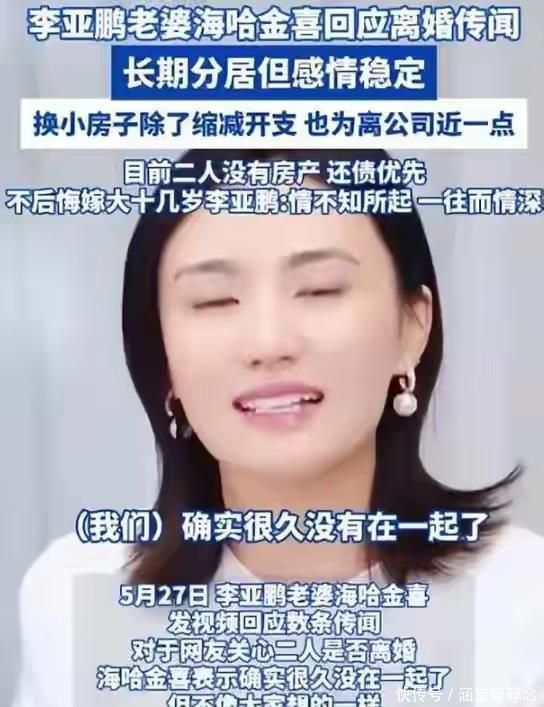 夫妻长期分居导致感情逐渐疏远。根据媒体报道,李亚鹏和海哈金喜在离婚前已分居长达8个月。海哈金喜一人承担起照顾女儿、做家务的重担,而李亚鹏则常驻云南经营茶叶生意。海哈金喜曾坦言:“目前夫妻俩名下无房产”,租房是为“降低生活成本,优先还债”。这种经济压力让年仅35岁的海哈金喜迅速憔悴,即便在镜头前强装幸福,也难掩眼底的疲惫。网友戏谑:“李亚鹏这是把‘将爱情进行到底’演成了‘将债务进行到底’。”